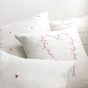 Housse double face. Lignée avec un petit cœur rose d'un côté et un grand cœur "My Happiest days are with you" de l'autre côté.