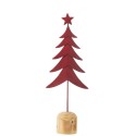 Sapin décoratif en métal rouge sur socle bois – 14,5 x 7 x 40 cm
